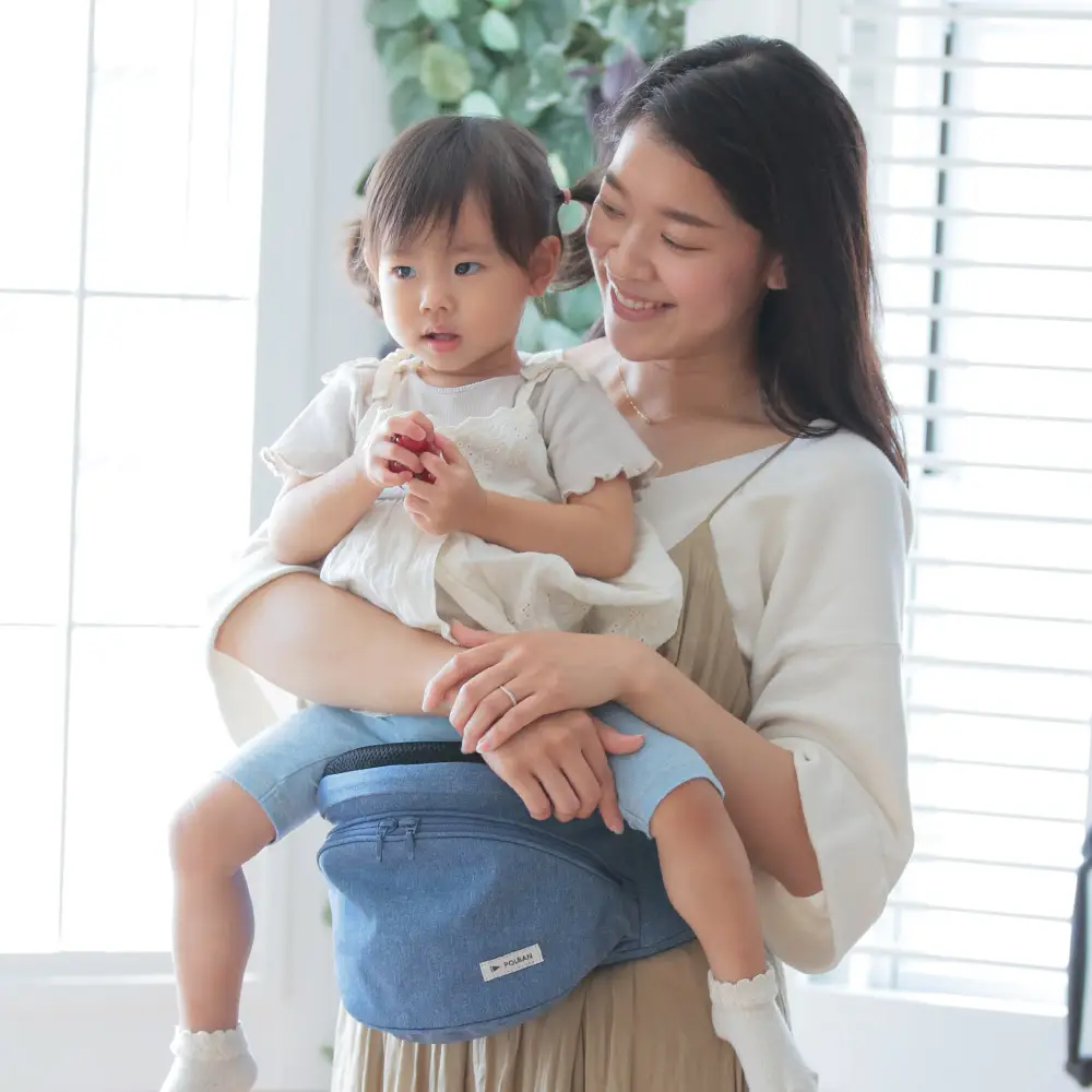 台座+腰ベルトだけのシンプル構造のヒップシート。 「歩く!」「やっぱり抱っこ!」を繰り返す1〜2歳ごろの“ちょこちょこ抱っこ”期に大活躍。