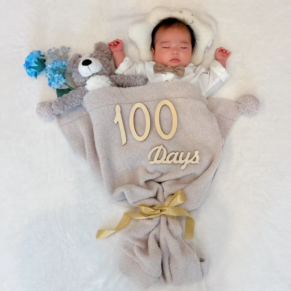 「100日祝い」には、記念にお昼寝アートを撮影するのもおすすめです♪