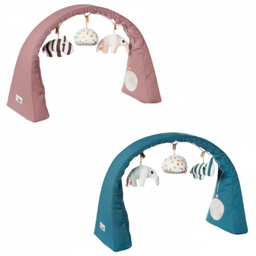 かわいらしい動物モチーフとやさしいカラーが特徴です。おもちゃ付きのアーチ型ジムは、ねんね期~おすわりができるようになってからも、成長に合わせて五感を使いながら遊べる人気アイテム♪また、幅を自由に変えられるのでベッドや子ども用お布団など、どんなところでも置いて使用することができます。インテリアになじむデザインで、おうち時間がぐっと楽しくなります。